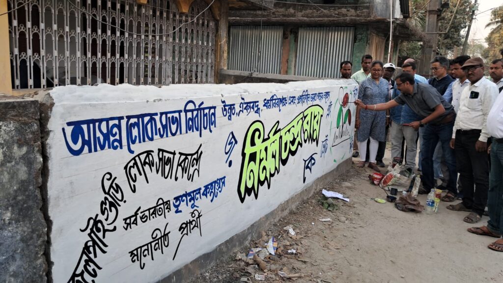 राजगञ्ज : जलपाईगढीका तृणमूल कङ्ग्रेस प्रार्थी निर्मल चन्द्र रायको समर्थनमा राजगञ्जमा देवाल लेखन शुरू गरियो। राजगञ्ज ब्लक तृणमूल कङ्ग्रेसको पहलमा आज राजगञ्जको बाबुपाडामा देवाल लेखन गरियो। यस अवसरमा राजगञ्ज ब्लक तृणमूल अध्यक्ष अरिन्दम ब्यानर्जी, राजगञ्ज ब्लक महिला तृणमूलका सह सभानेत्री सर्वनी धारा, अहिदार रहमान, श्रमिक संगठनका नेता सोलेमान मोहम्मद लगायत पार्टीका अन्य कार्यकर्ताहरू उपस्थित थिए। तृणमूल कङ्ग्रेस ब्लक अध्यक्ष अरिन्दम ब्यानर्जीले भने, ब्रिगेड जनगर्जन सभामा जलपाईगढी लोकसभा आसनको लागि तृणमूल प्रार्थीको रूपमा निर्मल चन्द्र रायको नाम घोषणा गरेको थियो। तिनको समर्थनमा आज राजगञ्जमा देवाल लेखन गरेर चुनाउ प्रचार शुरू गरेको हो। आगामी चुनाउमा तृणमूल प्रार्थी निर्मल चन्द्र रायले विपुल मतले जीत हासिल गर्ने तिनले दावी गरे।